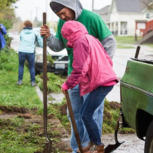The next thing I did was call 811, call before you dig, just to make sure there was no surprises. Good thing I did, there was a 6" gas main running down the parkway. I had the gas pipe marked along with a water line. Always call before you dig. Next I created a event on Facebook and began to promote it. Before I knew it there was over 300 people interested and 27 going. There was no way I would have enough tools for all those people. The response was rather overwhelming. As the event day neared the rain began to fall. But there was going to be one dry day before the event, unfortunately that days was the day before the event. The morning of the event it was raining steadily. I figured that 27 people weren't going to show up but 6 hearty souls did. It was the perfect amount of people. We worked great together and in 3 hours the garden was finished.